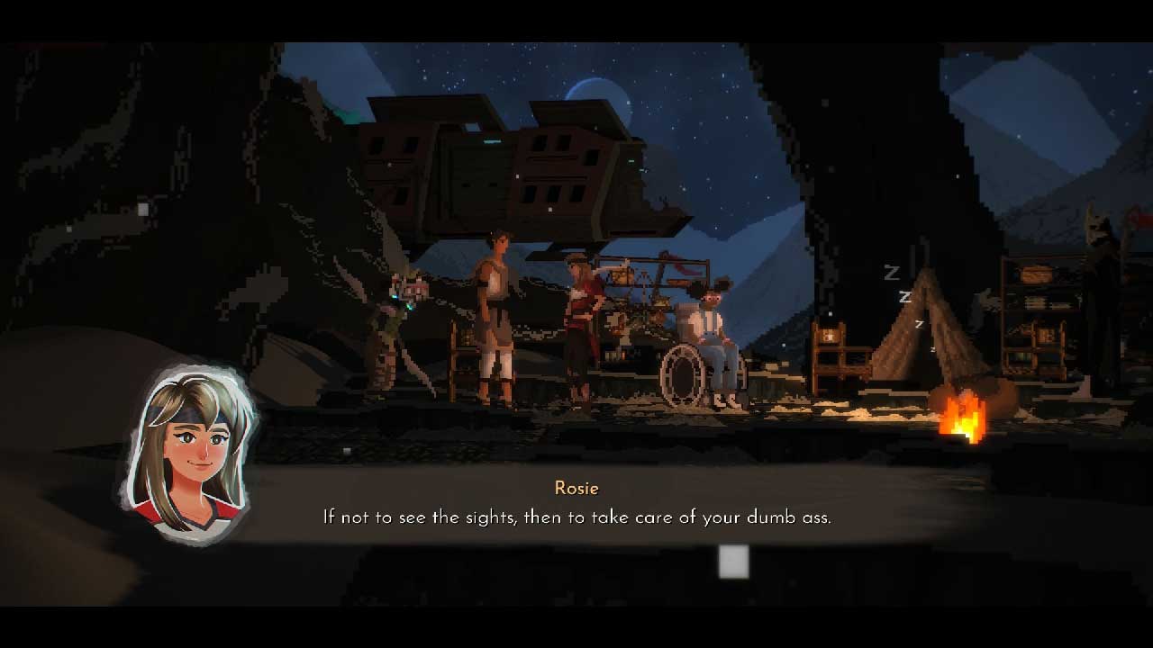 در ابتدا، داگ احساس می کند گم شده و تنها است، با چیزی جز خوکچه هندی حیوان خانگی اش که اکنون اندازه انسان است و تقریباً توانایی صحبت کردن دارد، از عزیزانش دور شده است. ماجراجویی که در آن قرار می گیرید پر از مکان ها و شخصیت های باورنکردنی است. تقریباً با هر بیگانه ای که ملاقات می کنید، می توان با آنها صحبت کرد، حتی اگر این یک خط گفتگوی نادر باشد، اما این کمک می کند تا همه جا احساس زنده بودن کنند. اکثر آنها ثابت هستند، اما همه آنها شخصیت خود را دارند و شما با نژادهای مختلفی روبرو می شوید که با نژادهای بعدی متفاوت هستند.در مورد روایت، این بازی داستانی قوی تر از آنچه در چند ساعت اول بازی پیش بینی می کردم ارائه می دهد. داستانی در مورد انتخاب ها و امید و همچنین در مورد سفر در زمان و ترس وجودی است. این طرح دارای ابعاد فلسفی و اخلاقی است که من انتظارش را نداشتم.