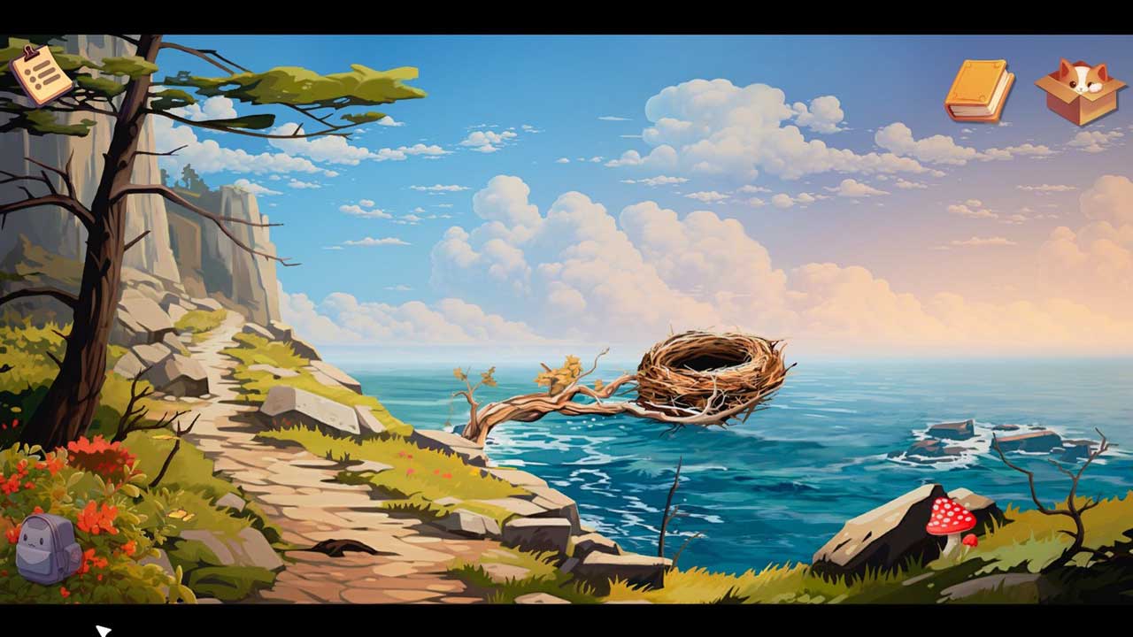 گیمپلی بازی Cloud Cats Land هم ساده و هم اعتیادآور است. فقط باید نشانگر ماوس را به هر چیزی که در صحنه توجه شما را جلب میکند، نشانه بگیرید. این میتواند یک شیء باشد که باید آن را بردارید و در جای دیگری قرار دهید، یا آن را با اشیاء دیگر ترکیب کنید تا مسیرها را باز کنید یا معماها را حل کنید. همانطور که ممکن است حدس زده باشید، این همان مکانیزم سایر بازیهای اشاره و کلیک (Point & Click) است. بنابراین، برای بازی کردن، مثلاً اگر روی Steam deck بازی میکنید، (فعلاً) به ماوس یا صفحه لمسی نیاز دارید.