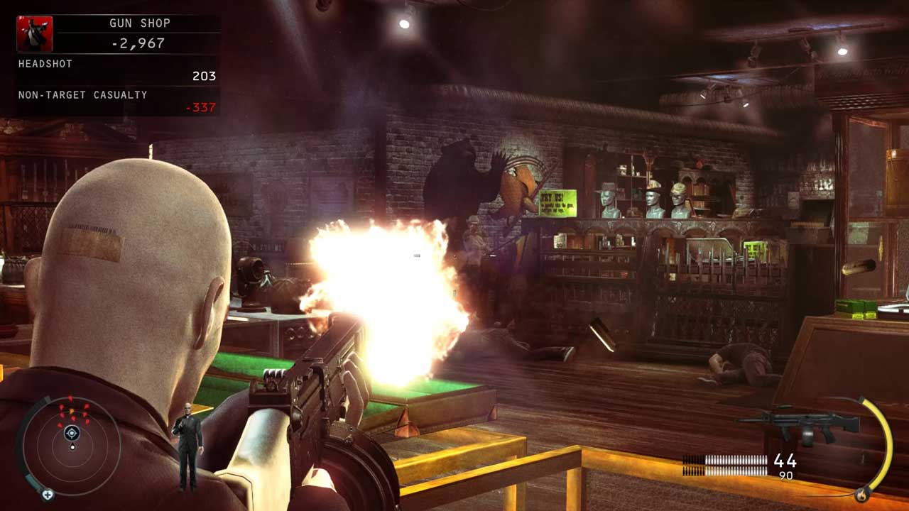 مامور ۴۷ میتواند هنگام استفاده از لباسهای مبدل، پیدا شدن در اطراف مراحل یا گرفتن از دشمنانی که “تصادف” داشتهاند، حتی بیشتر در میان جمعیت پنهان شود. او همچنین میتواند از حالت غریزه برای برجسته کردن سرنخها یا دور زدن دشمنانی با لباس مشابه استفاده کند، که در غیر این صورت ممکن است متوجه یک مرد طاس به عنوان یک شیاد شوند. با این حال، این سیستم بینقص نیست و مواقعی وجود خواهد داشت که شما دیده میشوید و فهمیدن دلیل آن دشوار است. همچنین مامور ۴۷ میتواند با استفاده از لباسهای مبدل، در مراحل یا از دشمنانی که “تصادف” کردهاند، بیشتر در میان جمعیت پنهان شود. نسخه نینتندو سوییچ، حسگر ژیروسکوپ را برای هدفگیری اضافه کرده که به روانتر و آسانتر شدن برخی از مراحل کمک میکند. من از اینکه این سبک کنترل چقدر خوب کار میکرد، شگفتزده شدم.