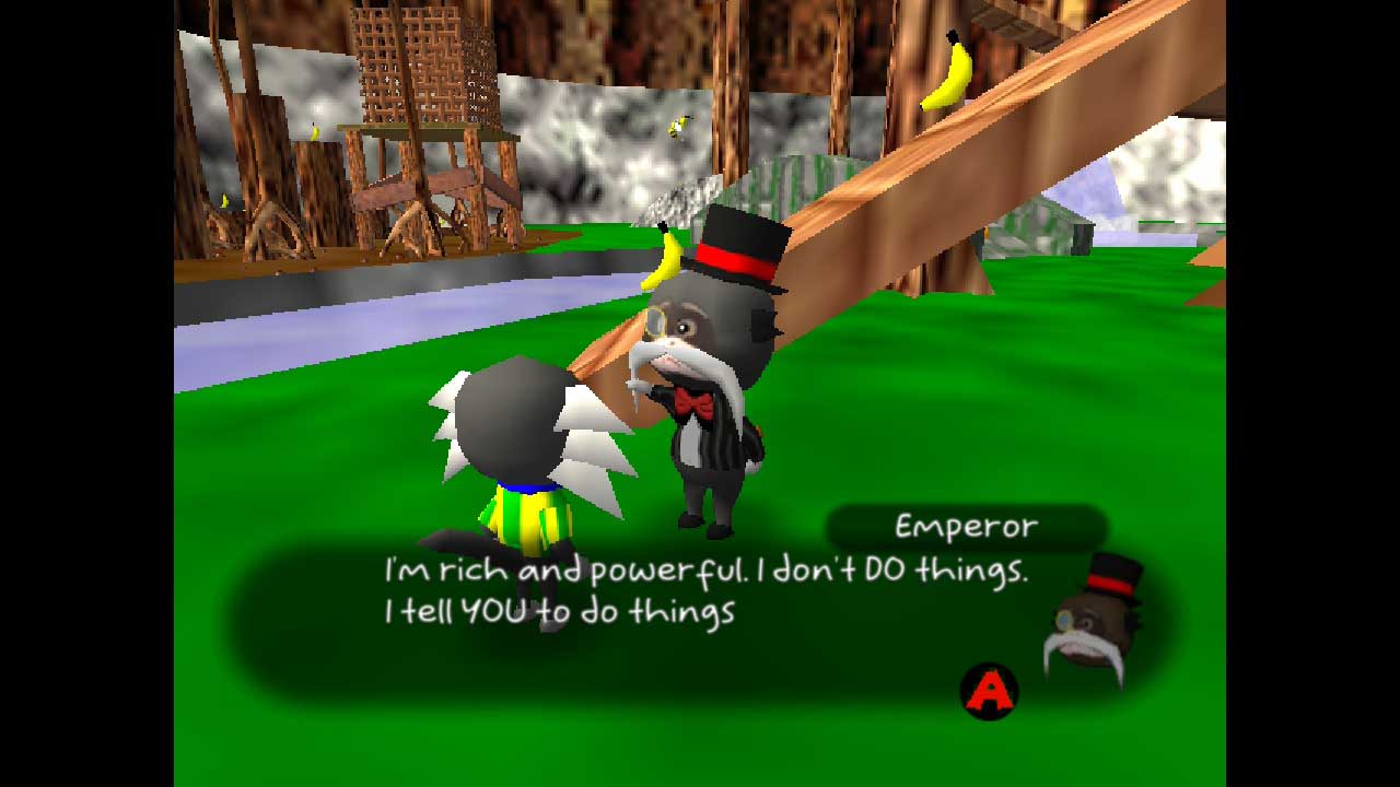 سیستم پیشرفت بازی هم دقیقاً مشابه منبع الهام اصلی آن است، به طوری که هر مرحله شامل ۲۰۰ موز (که مانند نتهای موسیقی عمل میکنند) و ۱۰ برده (که هم نقش Jinjos و هم نقش Jiggies را دارند) برای آزاد کردن/جمع کردن است. در نهایت، طراحی مرحله تا حدودی خلاقانه است؛ حتی اگر مرحله اول، علفزار باتلاقی شما باشد، مراحل دیگر شامل یک خیابان ویران در یک محیط ترسناک و خانه یک غول است که مرا به یاد بازی داستان اسباببازی ۲ در گذشته میاندازد.