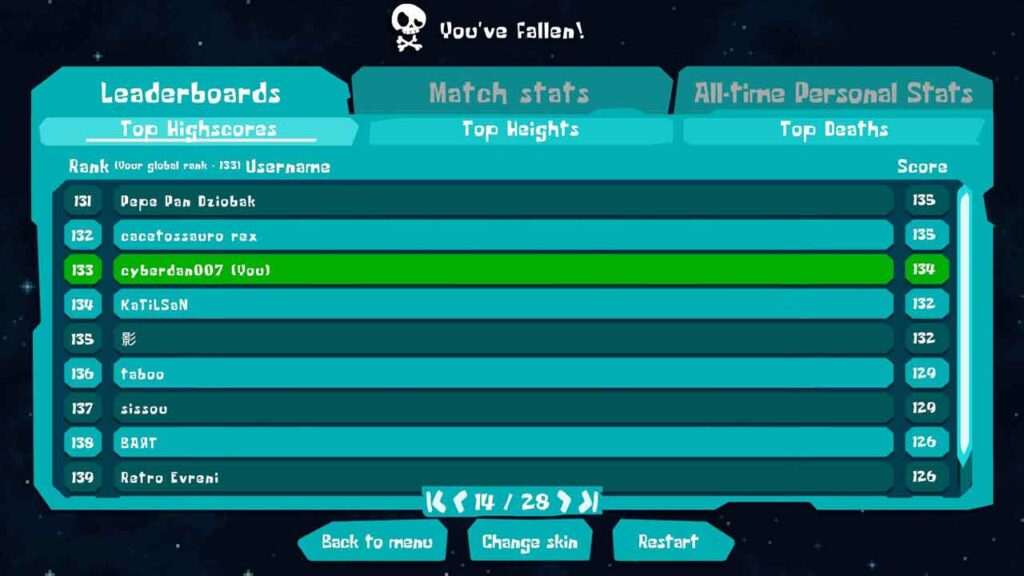 در واقع این تابلوهای امتیازات برای به چالش کشیدن شما ارائه می شوند، زیرا این بازی تماماً در مورد رقابتی بودن است. من متوجه شدم که با هر بار انجام این بازی تلاش می کنم در رتبهبندی به رتبه های بهتری دست پیدا کنم و بالاتر بروم که این به نوبه خود باعث می شود بخواهید بارها و بارها رکوردهای قبلی خود را شکست دهید. بعد از اینکه گدازه شما را گرفت، همیشه تابلوی امتیازات به شما نشان داده میشود، مطمئن شوید که آن را فراموش نکردهاید و واقعاً باعث میشود که بخواهید دوباره و دوباره امتحان کنید.