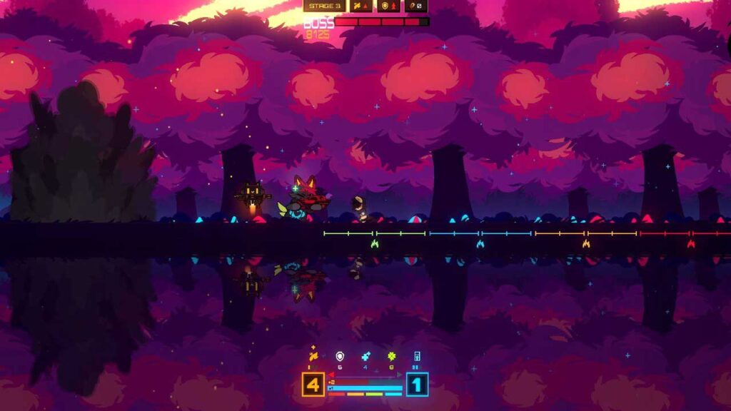خوشبختانه از آنجایی که این بازی گیم پلی بسیار سرعتی دارد، سرعت حرکت شخصیتهای آن نیز بسیار بالا است. در بخش گیم پلی این بازی 5 پارامتر اساسی وجود دارند که در نوار پایین صفحه بازی نشان داده می شوند: Attack که با رنگ زرد به نمایش درآمده، Defense به رنگ سفید، Recovery که روی بازیابی سریع مقدار سلامتی تاثیر دارد، Luck که مقدار شانس شما مبنی بر دریافت امتیاز بیشتر از گرفتن آیتم ها را نشان می دهد و Battery که در صورت استفاده از توانایی های خاص شما مصرف می شود.