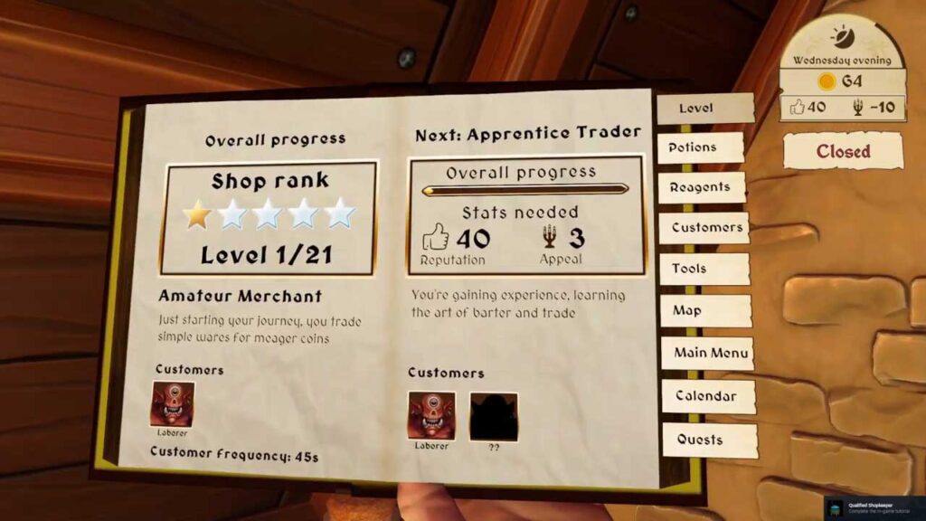 یکی از بزرگترین مشکلاتی که من با Potion Shop Simulator داشتم، Quests بودند. نه برای داستانی که می گویند یا کاری که از من می خواهند انجام دهم، نه نه! این واقعیت است که بازی به طور معمول شروع به نشان دادن مجدد نمادهای جستجو برای ماموریت های تکمیل شده می کند. این آیکونهای Quest روی نقشه شما نیز ظاهر میشوند و به نظر میرسد که با وجود تکمیل شدن، هرگز از بین نمیروند. همچنین یک شوالیه گرگ در بازی بود که ماموریتی داشت که من آن را به پایان رساندم، اما هنوز هم تا به امروز جلوی مغازه من ایستاده است.