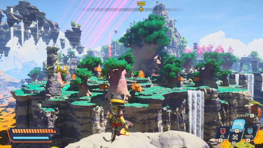 بازی از نظر بصری واقعا غنی است، به خصوص در صحنههای جنگل. گاهی اوقات این یک شاهکار فنی عالی است که هنوز دشمنان، اشیاء قابل جمعآوری و حتی مواد چسبنده رسانای برق که توسط بازیکن قرار داده شده را حتی وقتی خیلی خیلی دور هستند، نشان میدهد. حتی روی کارت گرافیک قدیمی Nvidia RTX 2070، این بازی میتواند با وضوح تصویر Ultra و نرخ فریم روان در وضوح 1080p اجرا شود، فقط در چند صحنه لرزش دارد و در رندر کردن دشتهای وسیع و صخرههای دوردست و مقیاسپذیر سیاره چهارم واقعاً مشکل دارد.