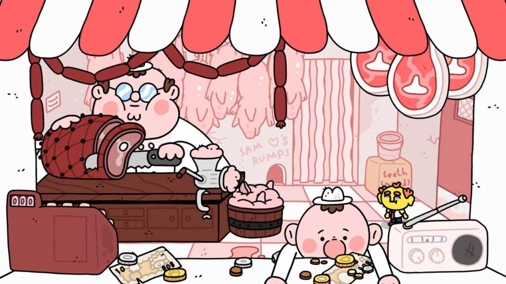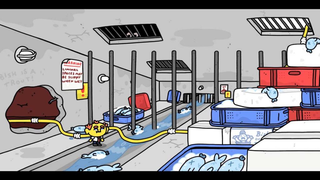 همچنین از استعدادهای صوتی یکی از کمدینهای مورد علاقهام، مت بری، بهره میبرد که لحن متمایزش واقعاً به فضای کلی بازی افزوده است. لحظات واقعاً فوقالعادهای وجود دارد که با پیشروی در گیمپلی، خندهدارتر و خندهدارتر میشوند. شخصیت شما در نقاط مختلف از دودکش به پایین هل داده میشود و در نهایت به اتاق استراحت مرد فقیری میرسد که دائماً در حال تمیز کردن دوده است و هر بار که ظاهر میشوید، در حالی که سعی میکند مودب بماند، بیشتر و بیشتر کلافه میشود. و در نهایت باید اشاره کنم که سبک هنری و انیمیشنها در جذاب کردن بازی به همان اندازه که هست، نقش زیادی دارند، حتی در بخشهای پوچگرایانهتر و مسلماً نگرانکنندهتر که واقعاً به موفقیت بازی کمک شایانی میکنند.