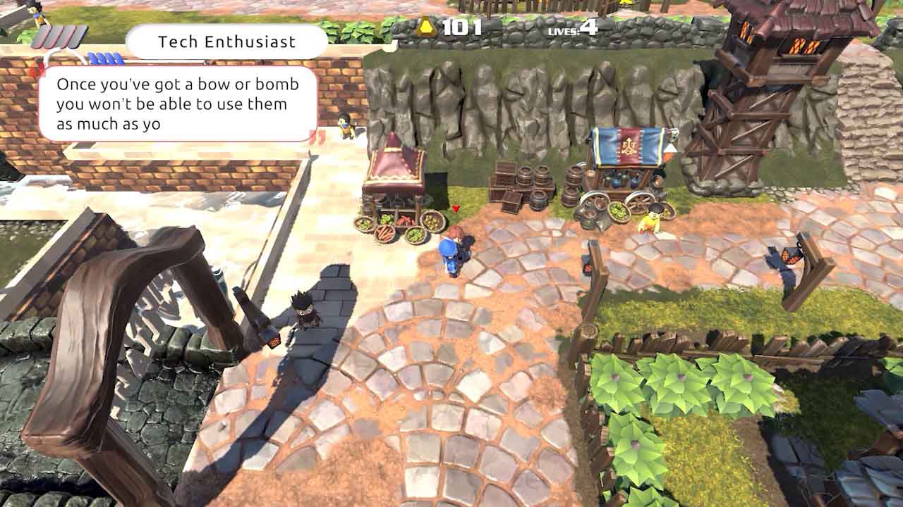 همچنین این بازی مجهز به یک نقشه است که تمام جزئیات دنیای بازی را به خوبی نمایش می دهد. به کمک این نقشه هیچ وقت در بازی گم نمی شوید و به راحتی می توانید محل ساختمان های مهم بازی را پیدا کنید. سلاح اصلی شما در ابتدا یک شمشیر و سپر است، ولی به مرور زمان تجهیزات بهتری پیدا می کنید. در بخش هایی از نقشه بازی نیز با یک باس فایت روبرو می شوید که اندکی چالش برانگیز هستند.