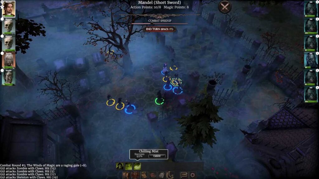 از لحاظ گرافیک، سبک بصری The Necromancer’s Tale بلافاصله توجه من را جلب کرد. این بازی آن زیباییشناسی نقاشیگونه و غمانگیز را دارد که کاملاً با محیط فانتزی تاریک آن مطابقت دارد. در حالی که جزئیات گرافیکی محیط از دور ۱۰۰٪ واضح یا فوقالعاده دقیق نیستند، میتوانید به وضوح جهتگیری هنری و فضایی را که سازندگان به دنبال آن بودند، ببینید. این سبک به گونهای است که به جای کم کردن از جذابیت وهمآلود بازی، به آن میافزاید.