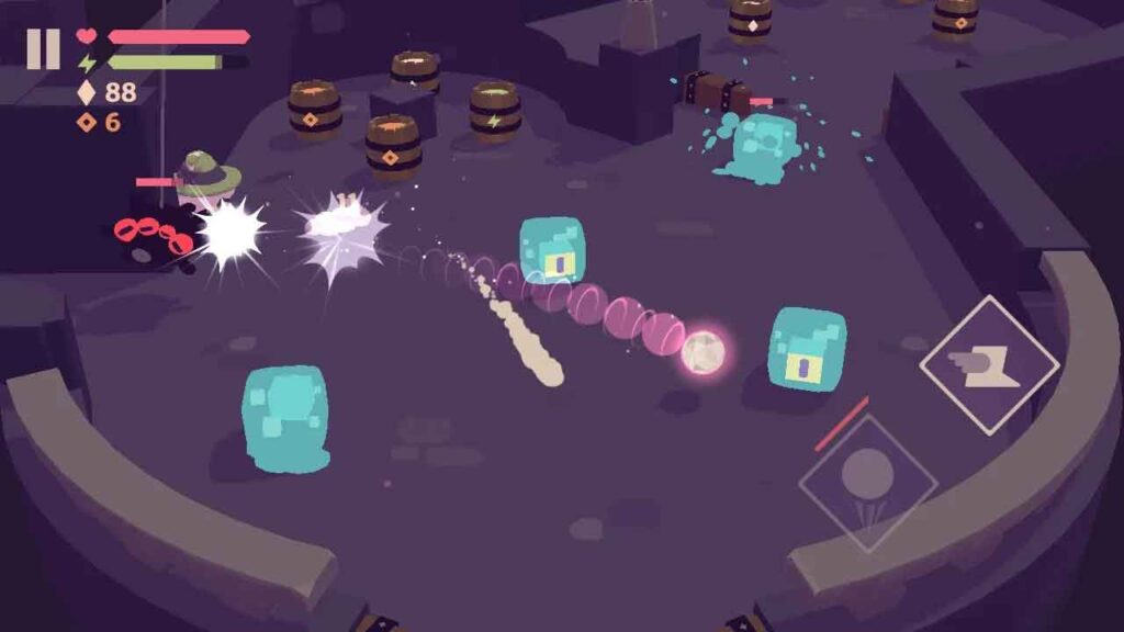 برای حمله به هیولاها، فقط با آنها برخورد می کنید و یا از یکی از جادوهای خود مانند Dash یا Magic Orb استفاده می کنید. هیولاها راهی برای مقابله و آسیب رساندن به شما دارند. به عنوان مثال: یکی از دشمنانی که با آن روبرو می شوید خفاشی است که روی سر شما بمب می اندازد و تنها راهی که می توانید به او آسیب وارد کنید، ضربه زدن به بمب و پرتاب آن به داخل بدن خفاشها است. بمبها منفجر می شوند و شما را از مرحله بیرون می اندازند که در این هنگام اگر مهارت feather خود را ارتقا نداده باشید، می تواند ویرانگر باشد و باعث از دست دادن میزان پیشرفت تان شود. این مهارت مقدار سلامتی از دست رفته بر اثر حملات دشمنان و هنگام سقوط از مراحل را کاهش می دهد، در این صورت دوباره می توانید از برج بالا رفته و مرحله مورد نظر را ادامه دهید. حملات سریع و پرتابهای شما روش های بسیار مهمی برای مقابله با دشمنان هستند و به شما کمک می کنند در هر سیاه چال حرکت کنید.