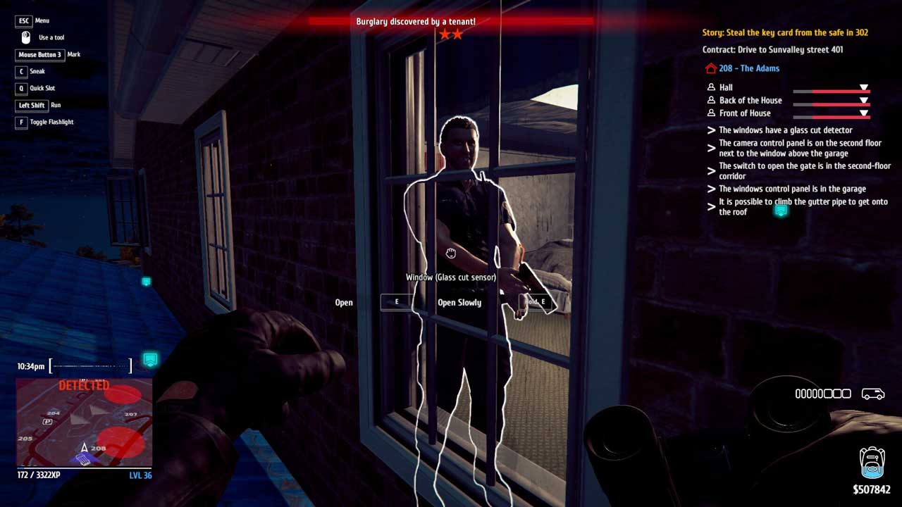 برای چند ساعت اول، Thief Simulator: Mastermind Edition کاملاً خوب کار میکند. پیشرفت قابل توجهی در گیم پلی از دزدیدن وسایل اولیه آشپزخانه گرفته تا لوازم الکترونیکی و دزدیدن ماشینها وجود دارد. یادگیری روالها و انتخاب زمان مناسب برای ورود و پر کردن هرچه بیشتر کیف تان قبل از فرار از در پشتی، کمی سرگرمکننده است. با بزرگتر شدن ابعاد خانهها، سیستمهای امنیتی نیز بزرگتر شدند. پیدا کردن نقاط کور دوربین برای اینکه بتوانید از یک لوله فاضلاب بالا بروید و خودتان را به پنجره طبقه بالا برسانید، واقعاً سرگرمکننده است.
