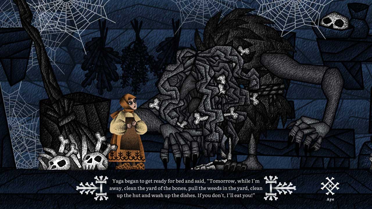 از آنچه میتوانم بگویم، Vasilisa and Baba Yaga به منبع اصلی خود وفادار مانده است. Vasilisa دختر جوانی است که توسط نامادریاش به بابا یاگا فرستاده میشود تا هدیه آتش را برای خانواده به دست آورد. بابا یاگای اصلی، یک جادوگر جنگلی است که از قهرمان شجاع ما میخواهد کارهای خانه سبکی انجام دهد. آن را به عنوان یک خدمت اجتماعی شوم در نظر بگیرید. تهدید خورده شدن به دلیل شکست همیشه وجود دارد، اما او در این راه از یک عروسک جادویی کمک میگیرد.