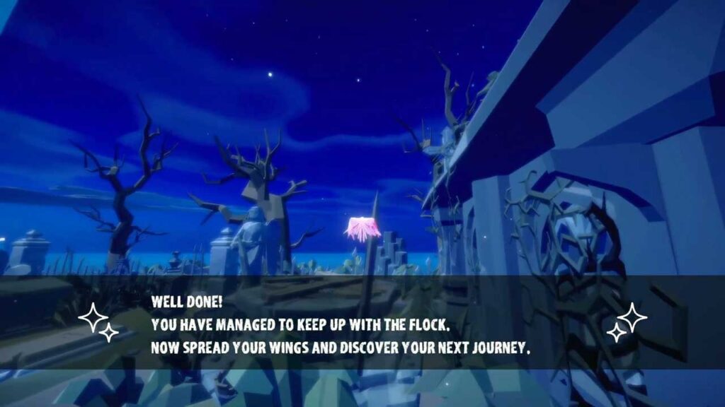 در طول 11 فصل، شما پرنده خود را از طریق مجموعهای از چکپوینتها و حلقههای تقویتکننده سرعت، پرواز میدهید و همه برای رسیدن به پایان فصل و سپس شروع فصل جدید تلاش می کنند. بنابراین، چه چیزی در اینجا با مجموعه آشنای Aery متفاوت است؟ خب، اول از همه اینکه پرندگان دیگری هم با شما هستند که یک دسته کوچک تشکیل میدهند. مورد دوم، بازی Windborn – Echoes of the Night یک مکانیزم جدید و سخت با محدودیت زمانی را معرفی میکند: اگر از بقیه عقب بمانید یا از مسیر اصلی خود خارج شوید و پرندگان دیگر قبل از شما به آخرین چک پوینت برسند، یک تایمر ظاهر میشود. شما فقط ده ثانیه فرصت دارید تا به آنجا برسید، در غیر این صورت شکست میخورید و باید کل مرحله را از ابتدا شروع کنید.